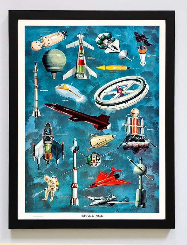 Includes glass and metal wire for hanging on your wall. Print: Bonded & Dry-mounted Print on Foam Core. Perfectly flat and smooth finish High Resolution and Quality Full Color Poster PrintSpace Age. Von Braun Rocket designs. Some used in Man in Space Tv Show of the 1950's. The prints are bonded to foam core on a hot vacuum press. This bonding gives the print a perfect flat and smooth texture. This process also insures the print will never fold or fade with age or moisture. This wonderful display makes a thoughtful and original gift containing a classic vintage touch yet modern design, allowing it to fit alongside both modern and classic decor. BUY WITH CONFIDENCE. ALL OF MY DELICATE ITEMS ARE SHIPPED WITH A SPECIAL 3 LAYER PROTECTION SYSTEM FOR A GUARANTEED SAFE ARRIVAL..
